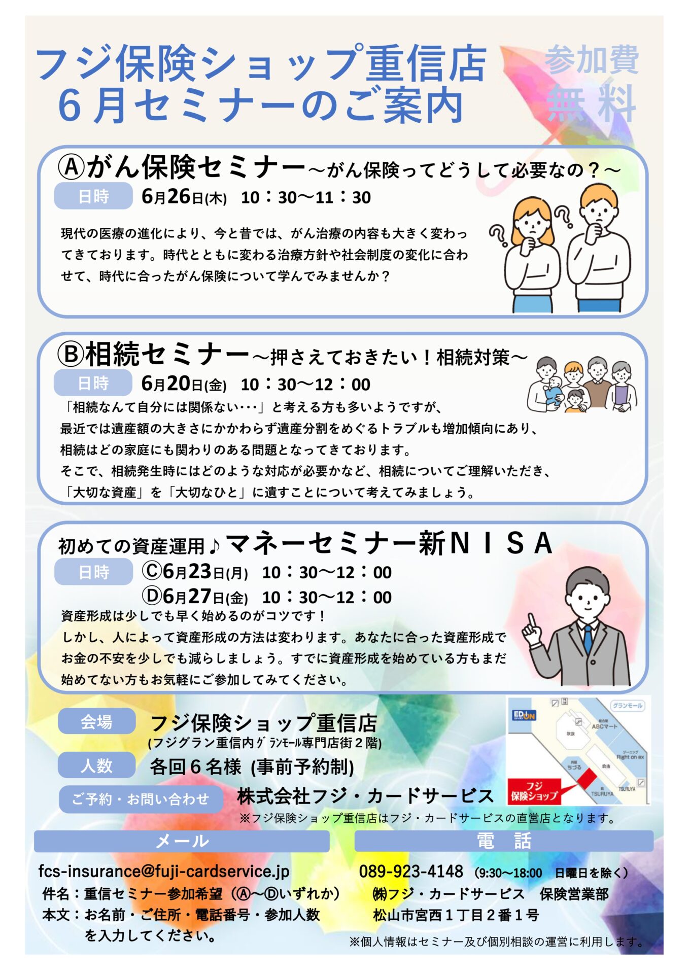 【参加費無料・事前予約制】フジ保険ショップ重信店 6月セミナー開催のご案内