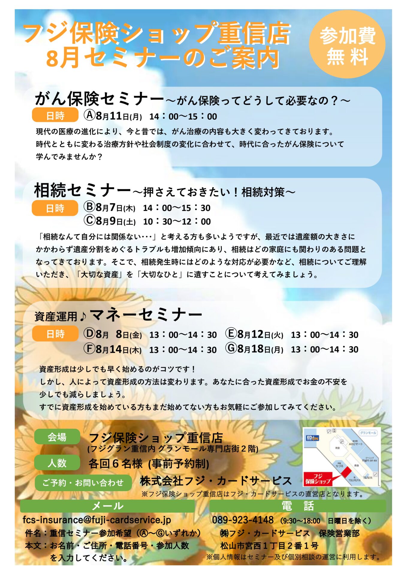 【参加費無料・事前予約制】フジ保険ショップ 8月セミナー開催のご案内