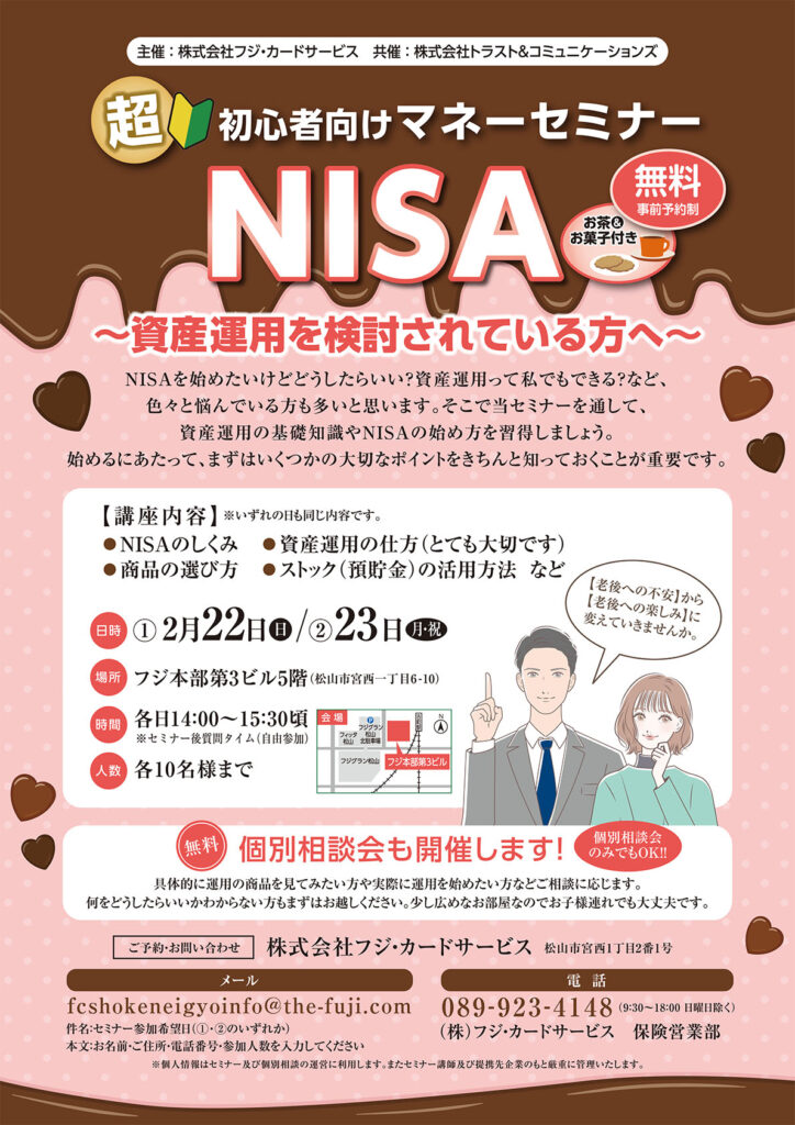 参加費無料・事前予約制【超初心者向けマネーセミナー NISA】~資産運用を検討されている方へ~