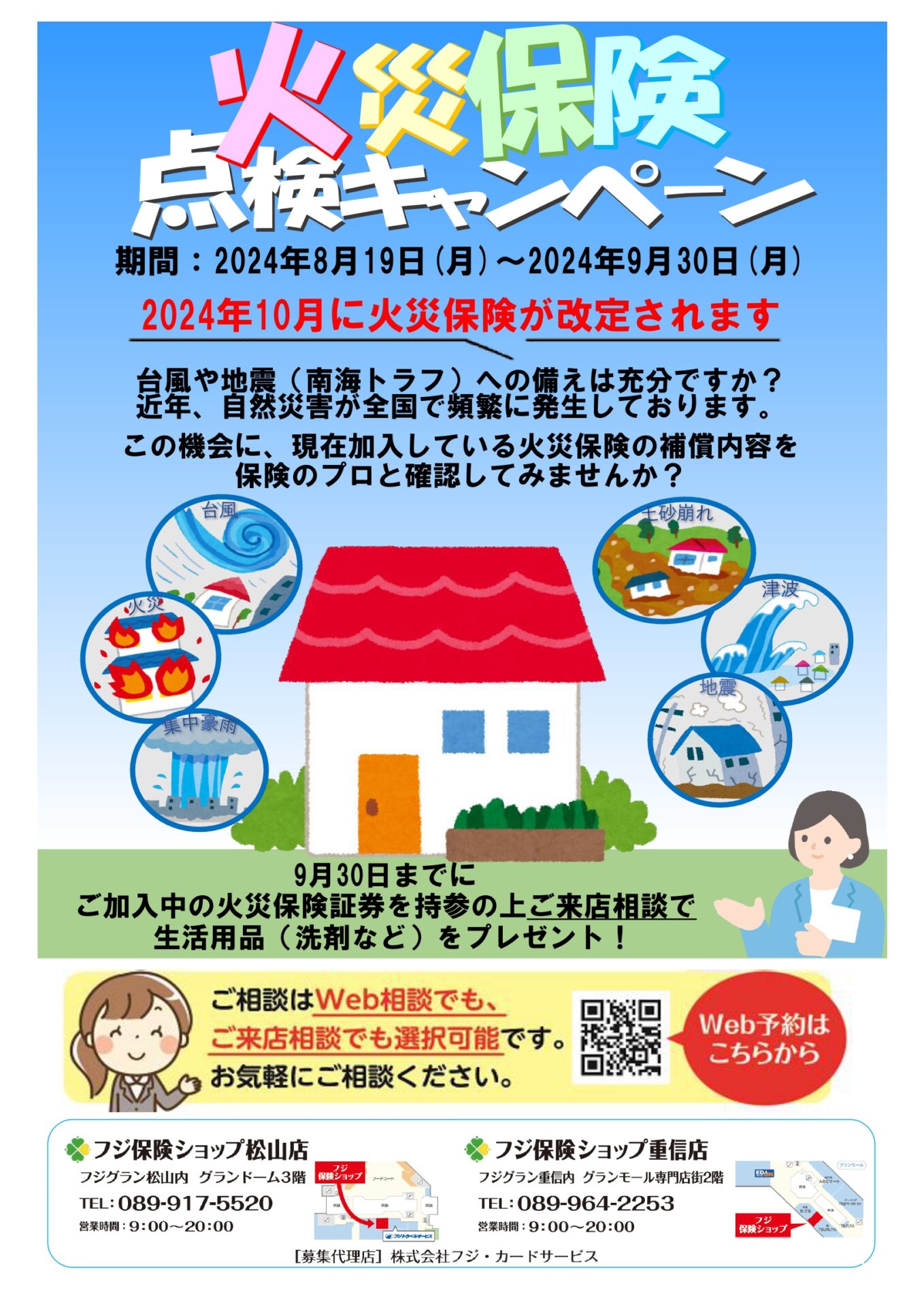 フジ保険ショップ松山店・重信店では火災保険点検キャンペーンを実施中!